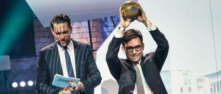 Bei der diesjährigen Award-Verleihung im Berliner E‑Werk konnten drei nominierte Start-ups in 60-sekündigen Pitches noch einmal beweisen, wie sehr sie für das Thema Nachhaltigkeit brennen. Der Preis ging schließlich an Bruno Ginnuth von CleverShuttle, einem neuen Anbieter für eTaxis.