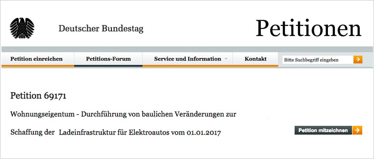 Online-Petition zur Vereinfachung von privater Ladeinfrastruktur