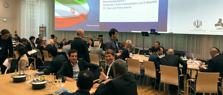Über 100 Unternehmer aus Bayern trafen sich am 12. Juli 2016 mit Vertretern der iranischen staatlichen Investitionsbehörde IDRO zu einer Konferenz und Branchengesprächen, um sich über aktuelle Investitionsmöglichkeiten und potenzielle Geschäfte im Iran auszutauschen.