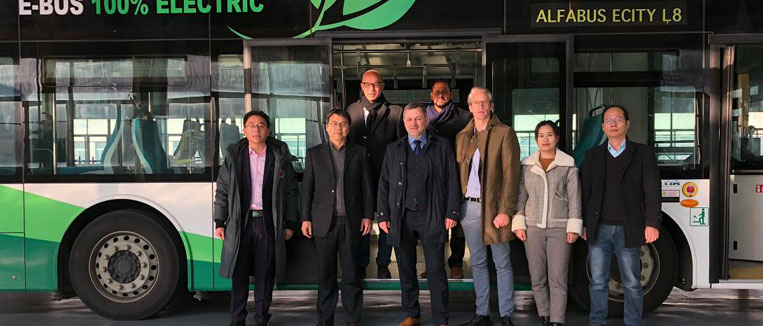 BEM-Delegation zur Automechanika Shanghai 2019 mit Vize-Präsident Christian Heep, den Wissenschaftlichen Beiräten Andreas Serra und Michael Tschakert sowie Easen Kandasamy von WallBe zu Besuch bei einem der größten eBus-Hersteller Chinas. »Der Präsident und die Geschäftsleitung von Jiangsu Alfa Bus Co. Ltd. haben uns im ca. 150 Kilometer von Shanghai entfernten Wuxi sehr freundlich empfangen und uns den Betrieb, die Herstellung und die eBusse gezeigt. Wir haben eine weitere Kooperation vereinbart und werden uns im Frühjahr 2020 in Mailand erneut treffen; dort betreibt Alfabus Europe u.a. bereits erfolgreich zwei 12-Meter eBusse in Kooperation mit Arriva Italia«.