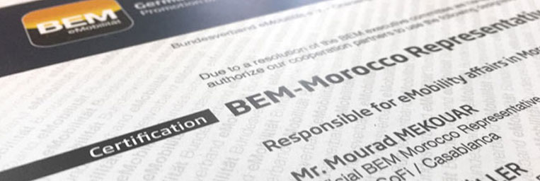 Auf Initiative unseres Gründungsmitglieds und ehemaligen Vorstandskollegen Frank Müller eröffnen wir im Rahmen der UN-Klimakonferenz COP22 in Marrakech die offizielle BEM-Repräsentanz Marokko. Als Partner wird das in Berlin ansässige BEM-Mitgliedsunternehmen FUTURE URBAN MOBILITY (FUM) die Repräsentanz über seine Zweigniederlassung in Casablanca leiten. So können wir uns frühzeitig auf dem Wachstumsmarkt Marokko einbringen und eine sich entwickelnde Neue Mobilität auf dem afrikanischen Kontinent aktiv begleiten. Unsere BEM-Repräsentanten Mourad Mekouar und Frank Müller arbeiten mit afrikanischen und europäischen Partnern aus dem Energie- und Transportsektor zusammen, um eine nachhaltige Mobilität in Marokko aufzubauen, sowie die Zielsetzung der marokkanischen Regierung im Bereich Elektromobilität zu unterstützen.