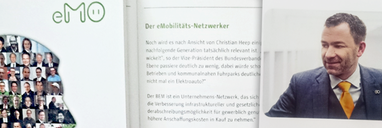 Der BEM ist ein Unternehmens-Netzwerk, das sich für eine Neue Mobilität engagiert und sich für die Verbesserung infrastruktureller und gesetzlicher Rahmenbedingungen einsetzt; etwa eine Sonderabschreibungsmöglichkeit für gewerblich genutzte E‑Fahrzeuge. »Das wäre ein deutlicher Anreiz, höhere Anschaffungskosten in Kauf zu nehmen.«