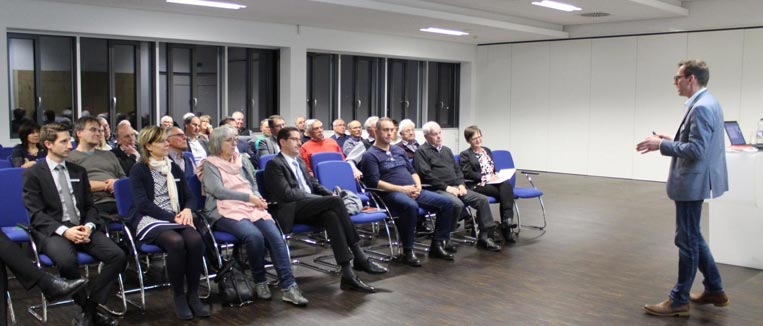 »Die Elektromobilität wird kommen. Die Frage ist nicht ob, sondern wie schnell.« So hat Markus Emmert, Wissenschaftlicher Beirat vom Bundesverband eMobilität, seinen rasanten Vortrag zum Thema Elektromobilität im Auditorium der ⇢ Volksbank Laichinger Alb eröffnet — passend zum Jahresthema der VHS, die einlud und die sich im neuen Semester verstärkt mit dem Klimawandel beschäftigt. Dass die Zeit reif sei für einen Wandel, leitete Emmert aus der Evolutionsgeschichte ab. »Wir durchleben gerade einen Energiewandel und einen Digitalisierungswandel. Da tut sich auch bei uns Menschen etwas.«