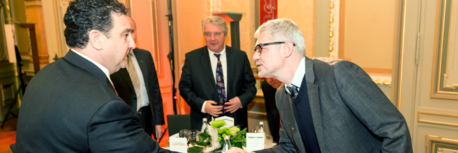 Leipzig. 27. September 2011. Gestern kamen auf Einladung des Bundesverbands eMobilität e.V. (BEM) sowie von Wolfgang Tiefensee, MdB, Bundesminister a.D. und Beirat beim BEM, Vertreter aus Politik, Wirtschaft und Verbänden zum »Frühstück bei Tiefensee« in Leipzig zusammen. Unter der Moderation von Wolfgang Tiefensee diskutierten die Teilnehmer Chancen und Möglichkeiten der Entwicklung Leipzigs, Sachsens und Mitteldeutschlands zur Modellregion Elektromobilität.