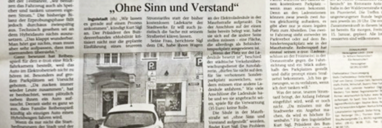 »Wir lassen es gerade auf einen Prozess ankommen«, kündigt Kurt Sigl an. Der Präsident des Bundesverbands eMobilität kritisiert nicht nur die geplante Einführung eines teureren Stromtarifes in Ingolstadt statt der bisher kostenlosen Ladekarte der Stadtwerke. Er will auch juristisch die Sache mit seinem Strafzettel klären lassen. Seine Frau, berichtete Sigl, habe ihren Renault Zoe an der Elektroladesäule aufgetankt. Da der Anschluss auf der einen Seite belegt war, habe sie sich auf die andere Seite stellen müssen — eine Fläche, die allerdings als Behindertenparkplatz ausgewiesen ist.