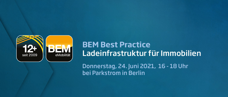 SAVE-THE-DATE 24.06.2021 / 16–18 Uhr / BEM Best Practice / Ladeinfrastruktur für Immobilien
