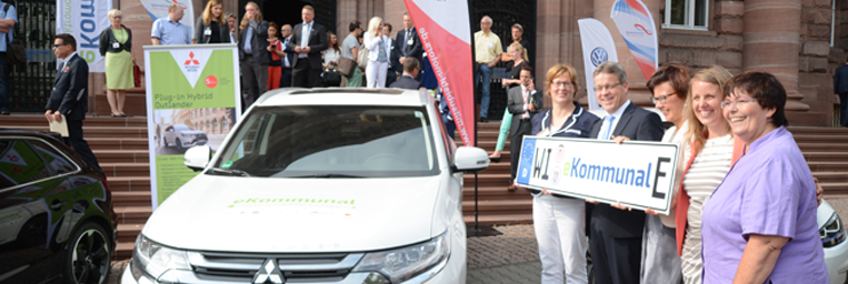 Das Projekt »eKommunal« übergibt am Wirtschaftsministerium 52 Elektrofahrzeuge von 8 Fahrzeugpartnern an kommunale Vertreter — gefördert vom Hessischen Ministerium für Wirtschaft, Energie, Verkehr und Landesentwicklung und der Initiative »Strom bewegt«. Der Bundesverband eMobilität ist Projektpartner neben den kommunalen Spitzenverbänden (Hessischer Städtetag, Hessischer Landkreistag, Hessischer Städte- und Gemeindebund), Energieversorger ENTEGA und den Fahrzeugherstellern Audi, BMW, Kia, Kyburz, VW, sowie den BEM-Mitgliedern Mitsubishi, Nissan und Tesla.