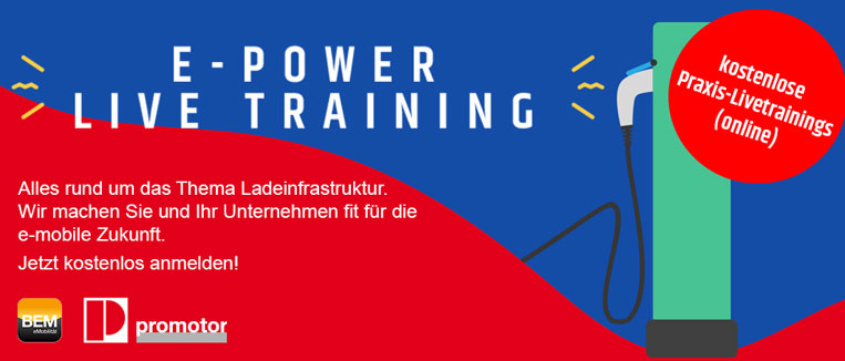 Juni 2019 /Kostenloses online Live-Train­ing — ePow­er vom BEM & pro­mo­tor zum The­ma Ladesta­tio­nen und Ladeinfrastruktur